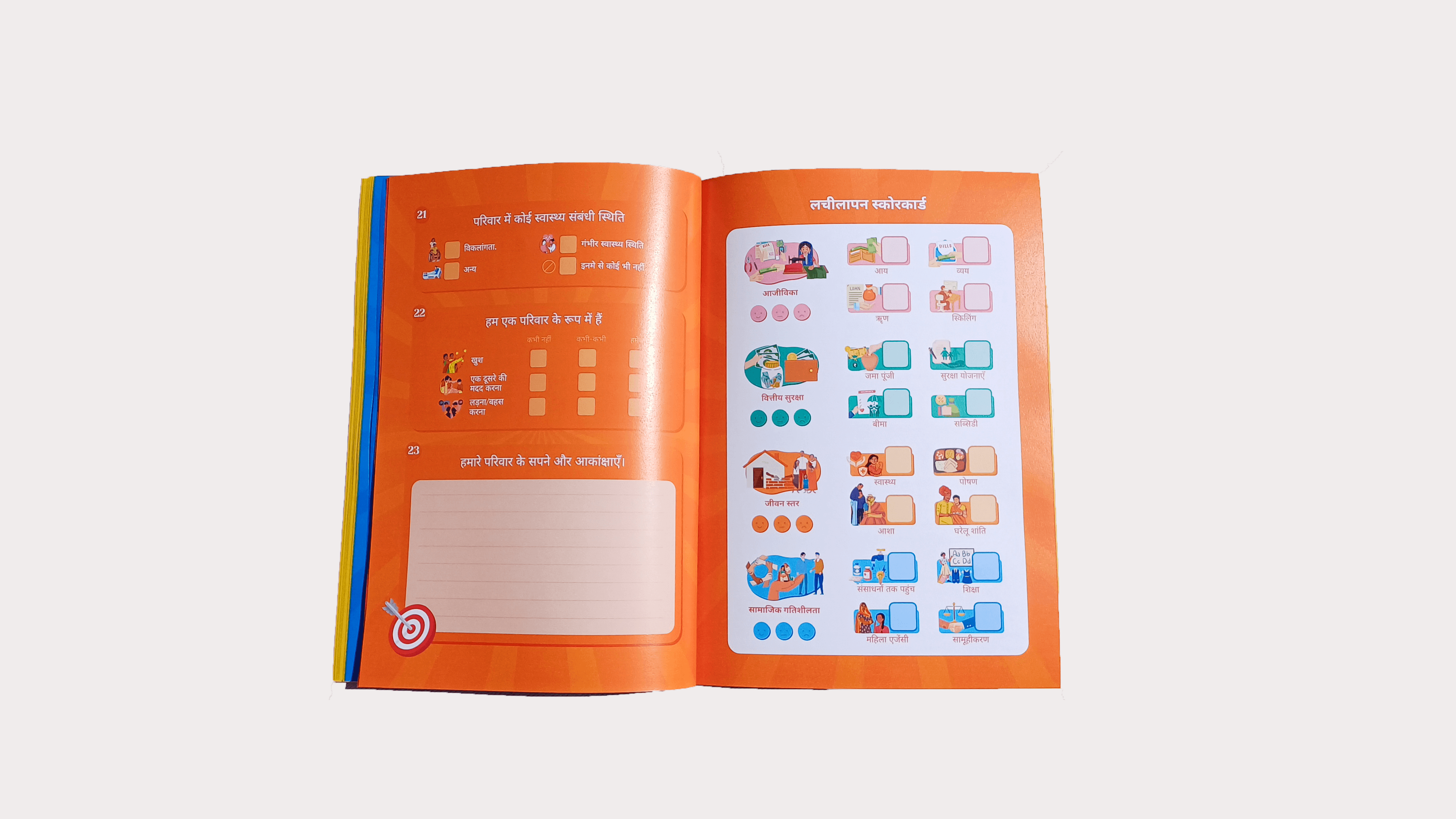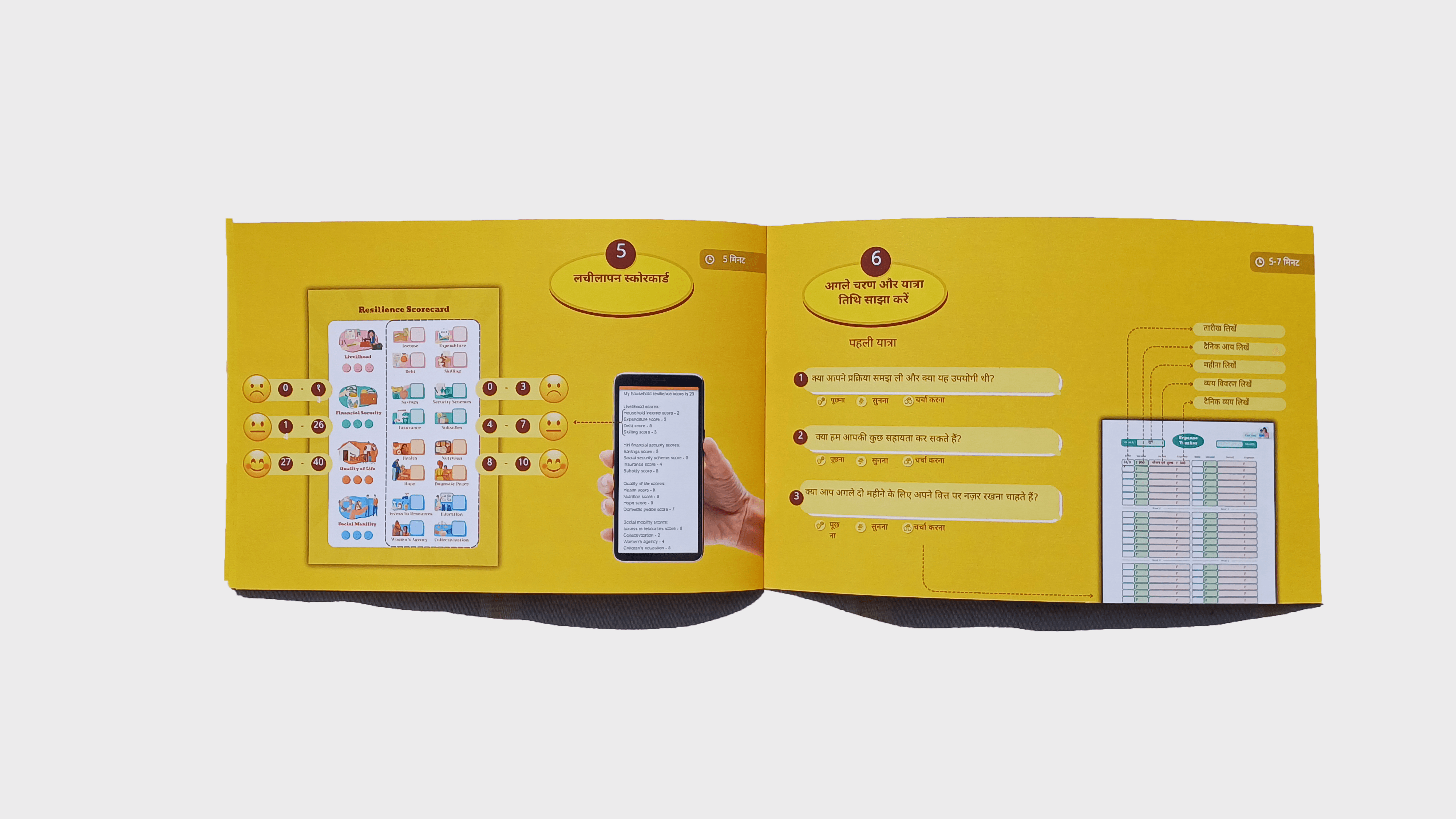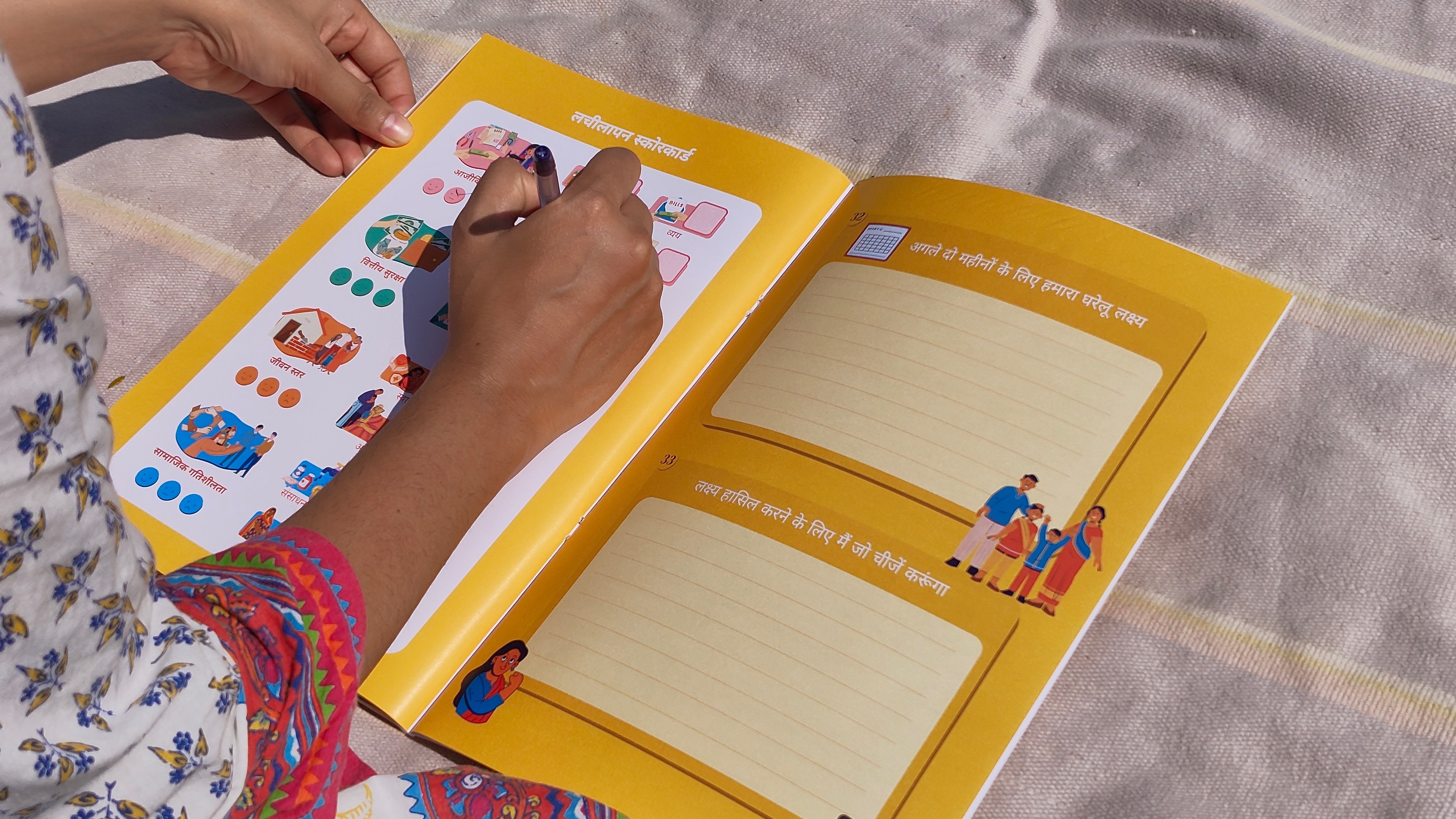 We partnered with Vrutti to translate the abstract idea of economic resilience into something households could see, discuss, and act on. Using visual tools, journals, and a field guide, we supported both households and field teams to build shared understanding, data ownership, and sustained engagement.