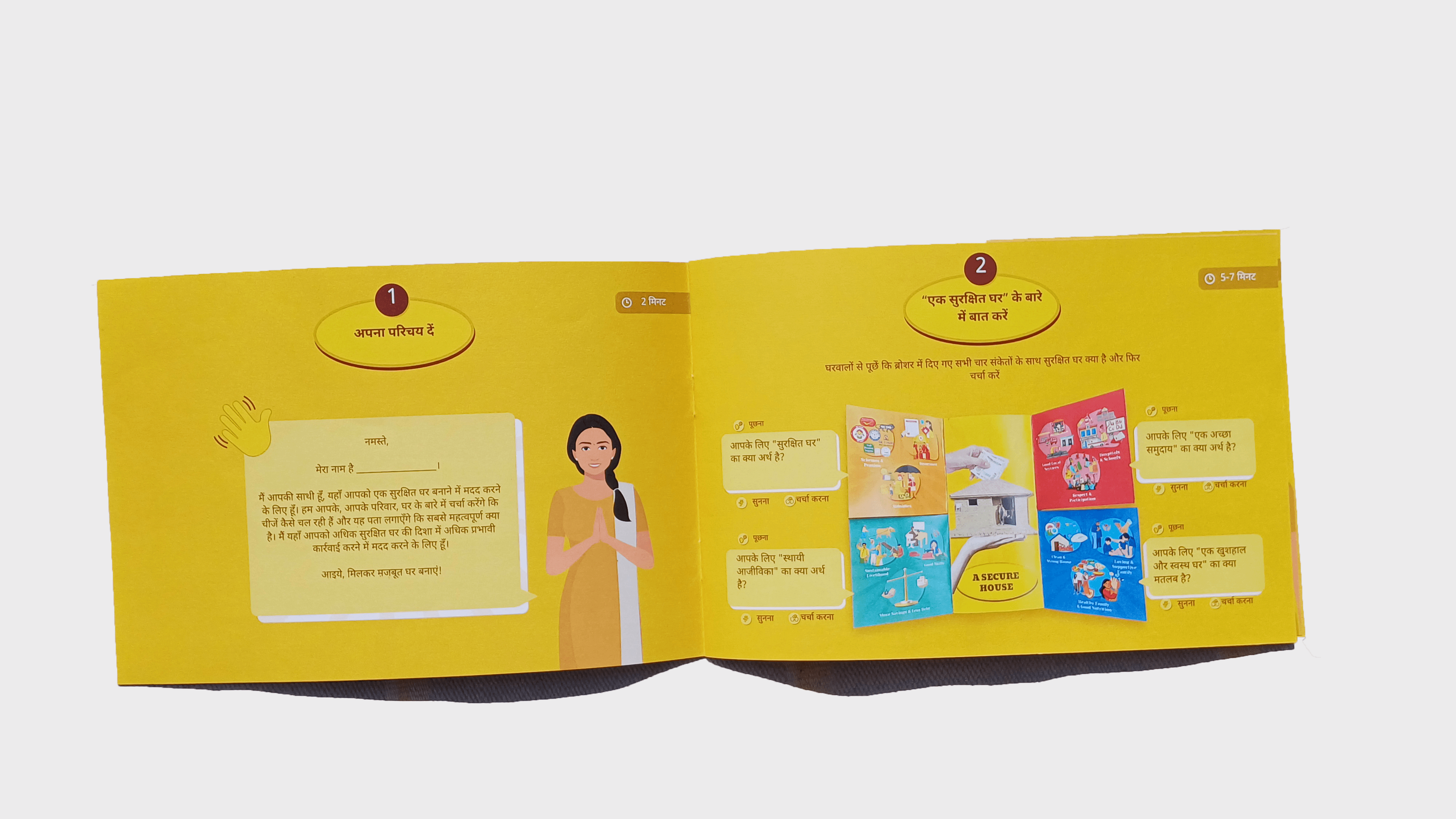 Visual guides, prompts, and workflows that support Saathis to lead consistent, meaningful conversations across visits.